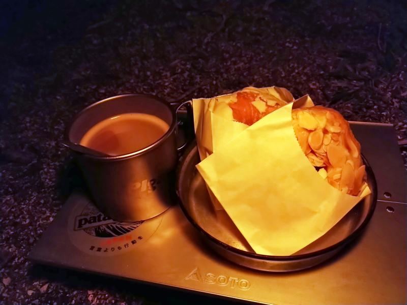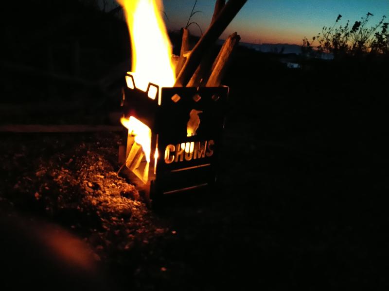 たき火をしながらコーヒーを味わい夕暮れを楽しんでから夕食に。