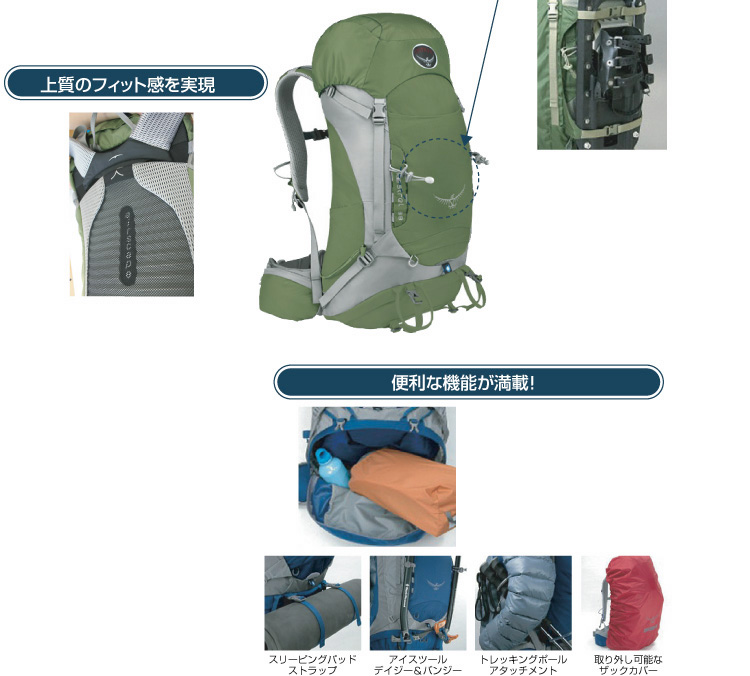 1〜2気室へ切り替えが可能な下部アクセスジッパーを装備。防寒着が増えてくるこれからの季節に便利なザックです。