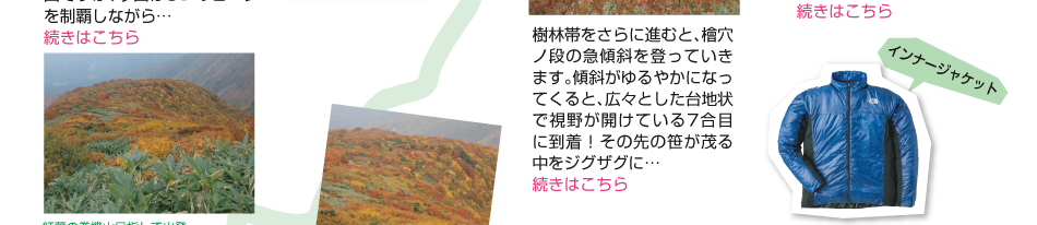 ここからは西へ進み割引山へ。山全体が黄色く染まり、まるで外国のような景色が広がっています。なだらかな道を引き返し、今度は本山から牛ヶ岳へ。尾根から尾根への景色を楽しみながらの散策はとても楽しく、最近のハードな長時間歩行の山行とはひと味違った山の魅力を感じることができました。