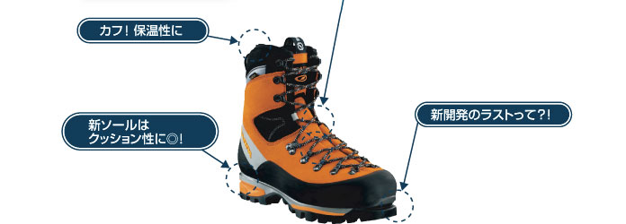 逃がさない! 縦走登山向きにした開発されたラスト(木型)は、爪先に適度な幅を持たせながら甲を低く抑え、快適さとフィット感を与えてくれます。