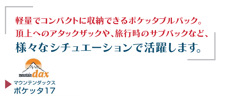 必要最小限の荷物にまとめてコンパクトに収納できる、ポケッタブルシリーズ。