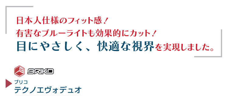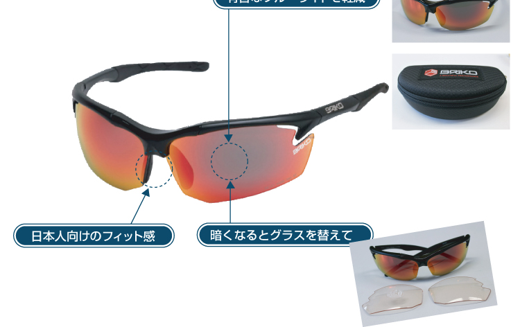 ノーズパッドを高くし、テンプルを自由に変えることができる日本人仕様。風の巻き込みや光線の侵入を防いで、完璧なフィット感と快適な視界を確保します。