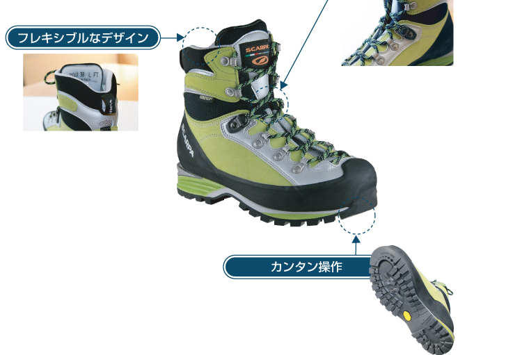 クライミング向けの木型を採用。ぴったりフィットし、爪先に力が入れやすく、グリップに優れた軽量ビムラムソールと相まって安定したフットワークを発揮します。