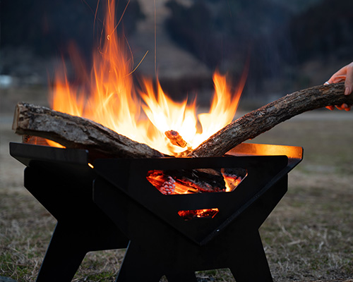 『京都から小さな火種を大きく燃え上がる炎に!』炎にまつわるモノ、コトに特化したブランドです。 flameFRAMESのBONFIRE STANDは、板厚3.2-5mmの分厚い黒皮鉄板の焚火台。ハードユースに耐え、メンテナンスをしながら長く愛用することが出来ます。 お酒を片手に、家族や友達と、または一人で、まったり過ごす至福の時間を。
