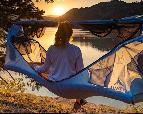 Haven Tent(ヘブンテント)はロッキー山脈の大自然から生まれました。発明者であり代表のデレク・ティロットソン氏が、彼のガレージにて手作りでプロトタイプを制作、試行錯誤の繰り返しで新しいプロダクトを生み出しています。ヘブンテントの理念は「睡眠をキャンプのハイライトにする」です。※havenは理想郷、安息の地などの意味です。本来の発音はヘイヴンに近いですが、日本人にとって言いやすく覚えやすい「ヘブンテント」を日本の商品名として採用しております。