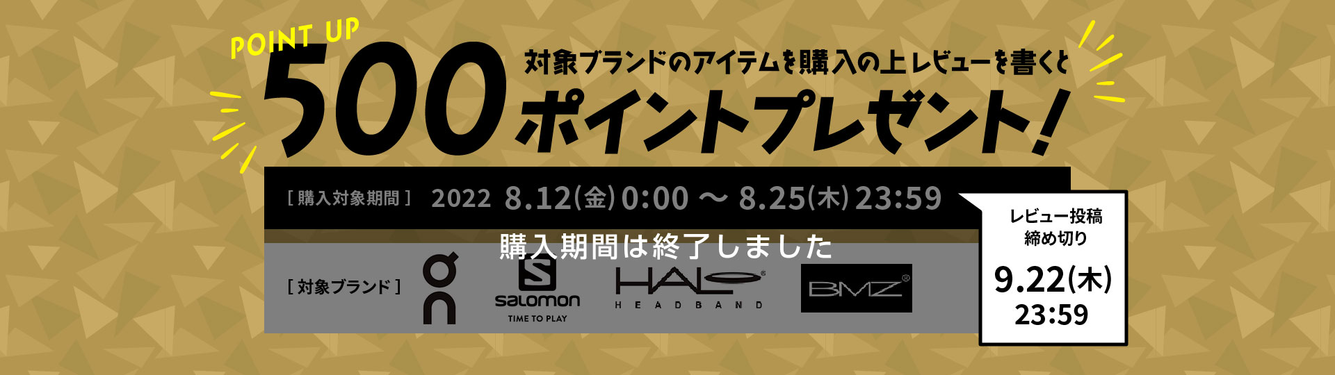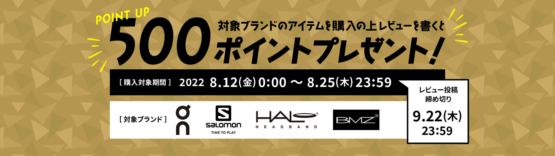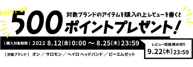 キャンペーン期間中に対象ブランドアイテムをご購入の上、レビュー投稿で500ポイントプレゼントいたします。