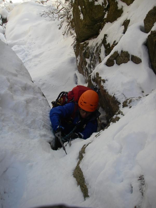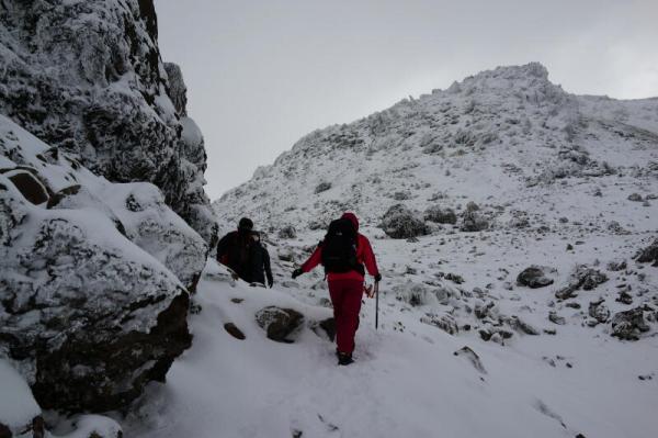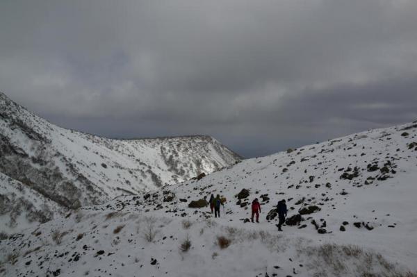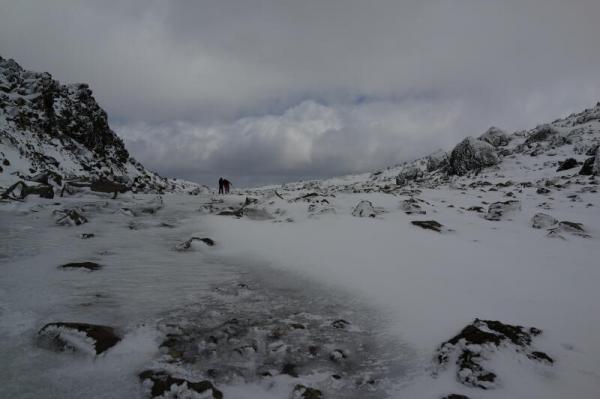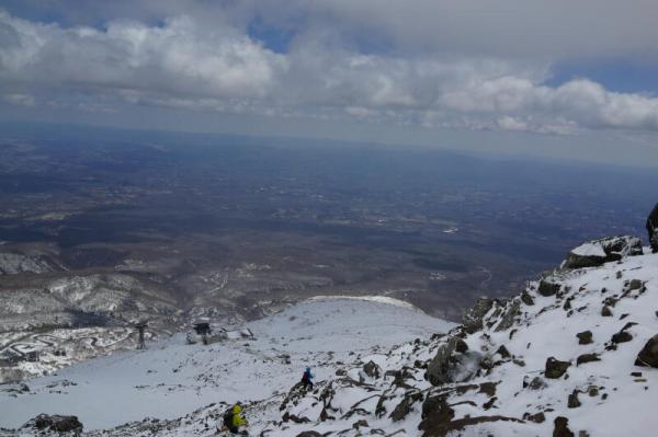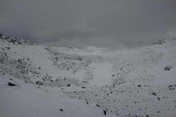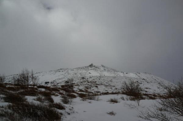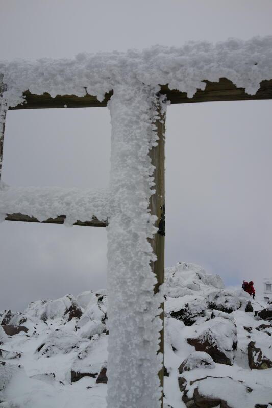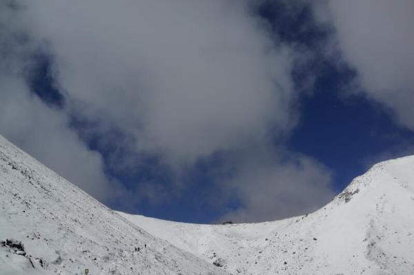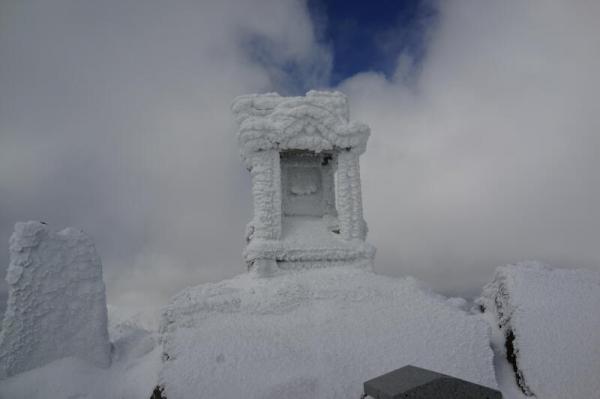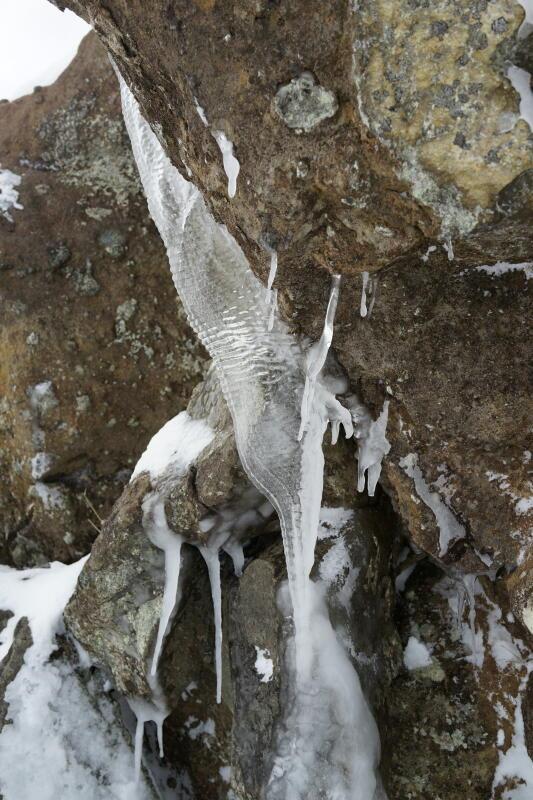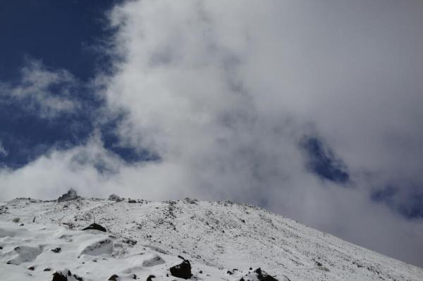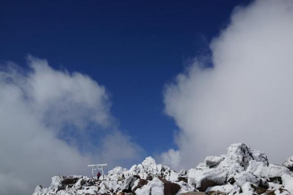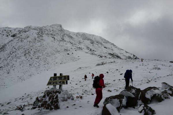 - 積雪は少しで、森林限界を超えると雪は吹き払われ氷の登山道も現れます。しっかりしたアイゼンを携行する必要があります。