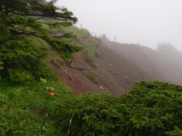 - 南アルプス南部の一般的な登山道です、雨で一部ぬかるんでいます