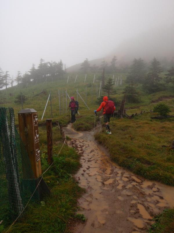 夏休み中で、悪天候にもかかわらず多くの方が歩いておられました、流石日本百名山です
