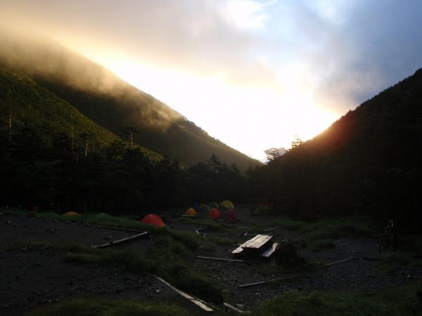 - 1日目 聖光小屋P<45M>西沢渡<295M>聖平分岐<25M>聖平小屋