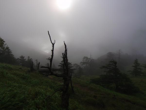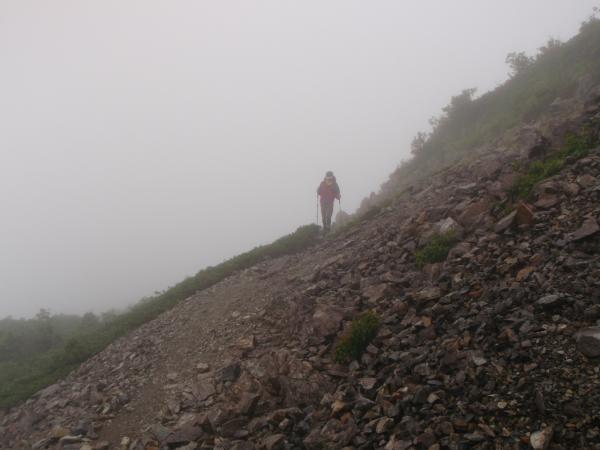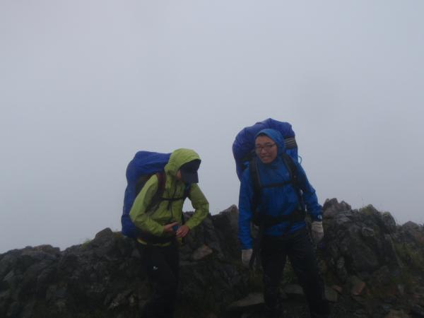 終始雨模様の中で、山頂前後は強風も伴って、初中級者にはかなり厳しい登山でした、完全な装備とそれなりのスキルは必要ですね