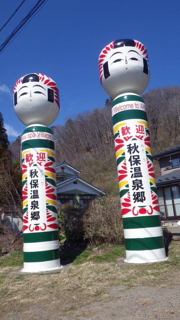 ここでも道沿いに電車が保存してあったり、大きいこけしが出迎えていたり。思いがけず、ワクワクする事が続出。