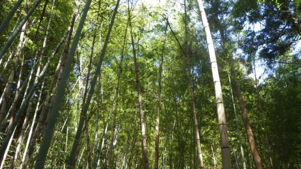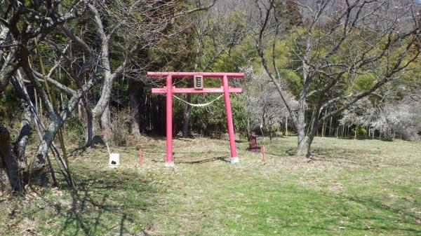 細い農道を歩いて10分程で赤い鳥居が見えてきます。これが登山口です。最初は竹林、杉林、雑木林と変化していきます。
