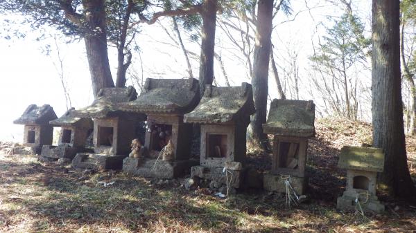 9つ、つづら折りを返すとぴょこんと山頂に出ます。山頂には大小7つの石祠があり、塩釜や月山などそれぞれの神社のお札が入っています。