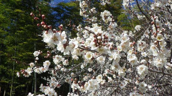 登山口まで戻ると、登りでは気付かなかった梅の花が見事に咲いておりました。