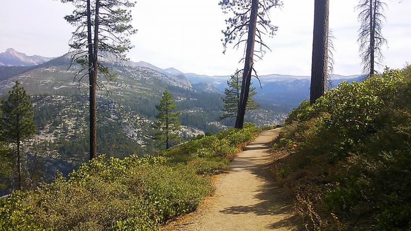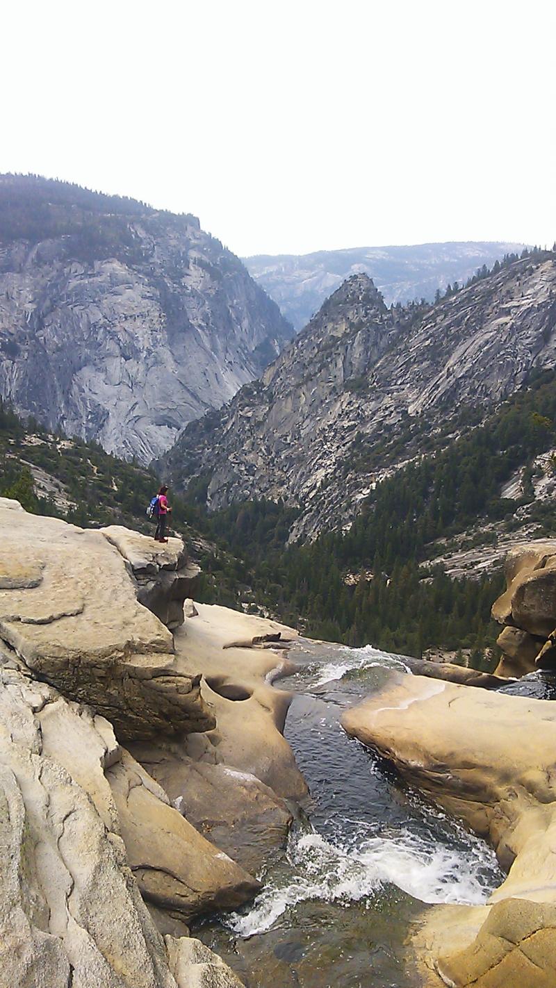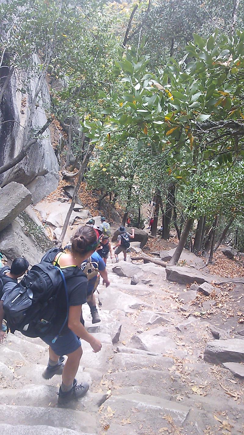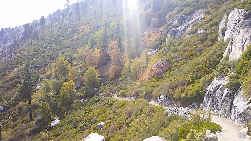 グレイシャーポイント~ネバダフォール間のトレイルは人がまばらでしたが、ネバダフォール~バーナルフォール~ヨセミテバレー間は非常にたくさんのトレッカーで賑わっていました。