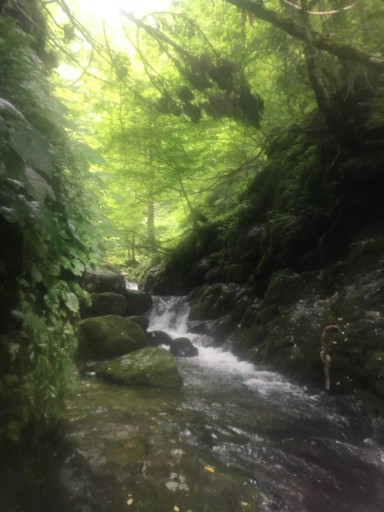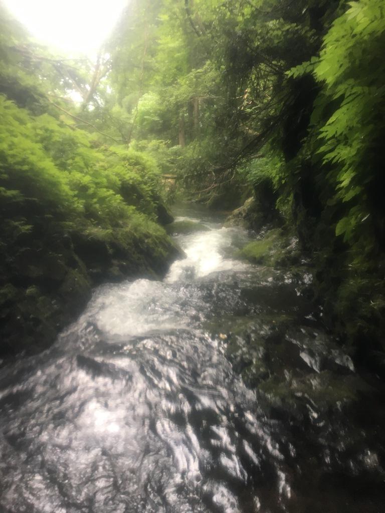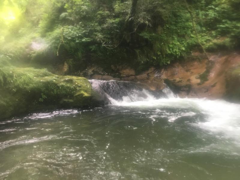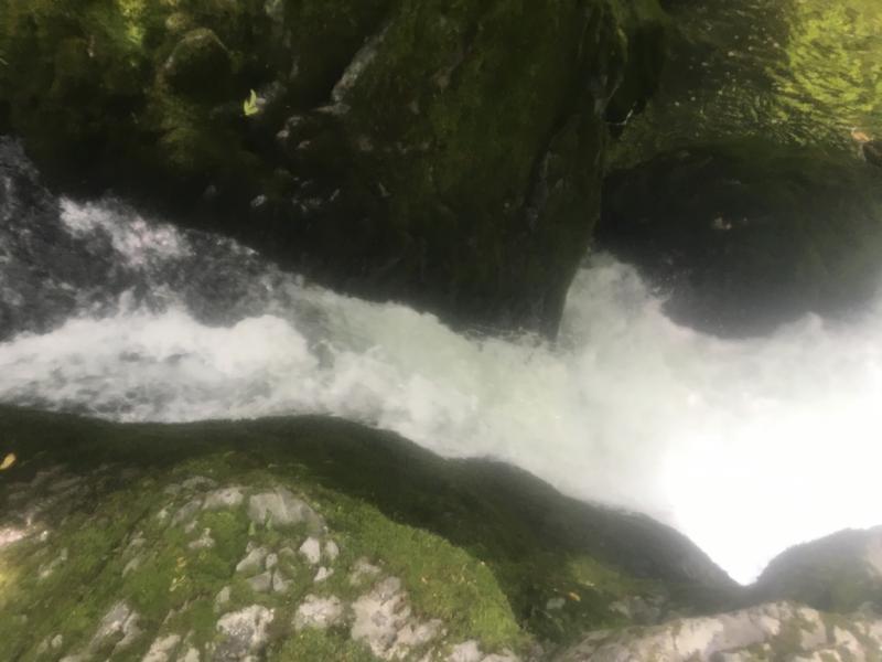 水量多し。苔も付いてるので河床は歩きにくいです。