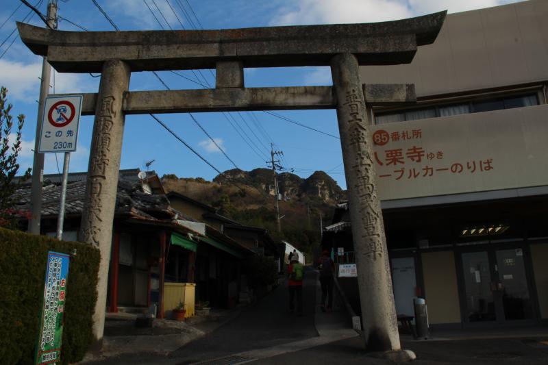 お寺に到着しました。弘法大師が唐に念願の仏教の勉強ができるか焼き栗に願をかけ、帰ってくると育つはずのないその栗が育っていたところから八栗寺となずけられました。標高223Mあります。