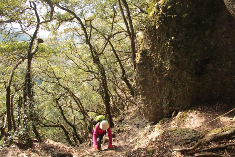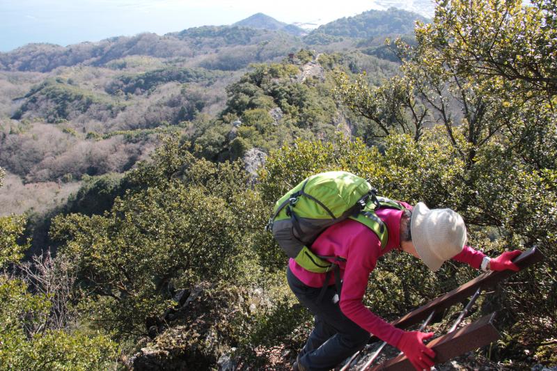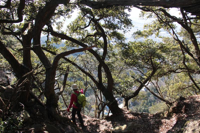 山頂までは すこしウバメガシの落ち葉が落ちて 滑りやすく、展望所からの眺めがさいこうです。ウバメガシの森なの滑りやすい、アプローチシューズが便利です。