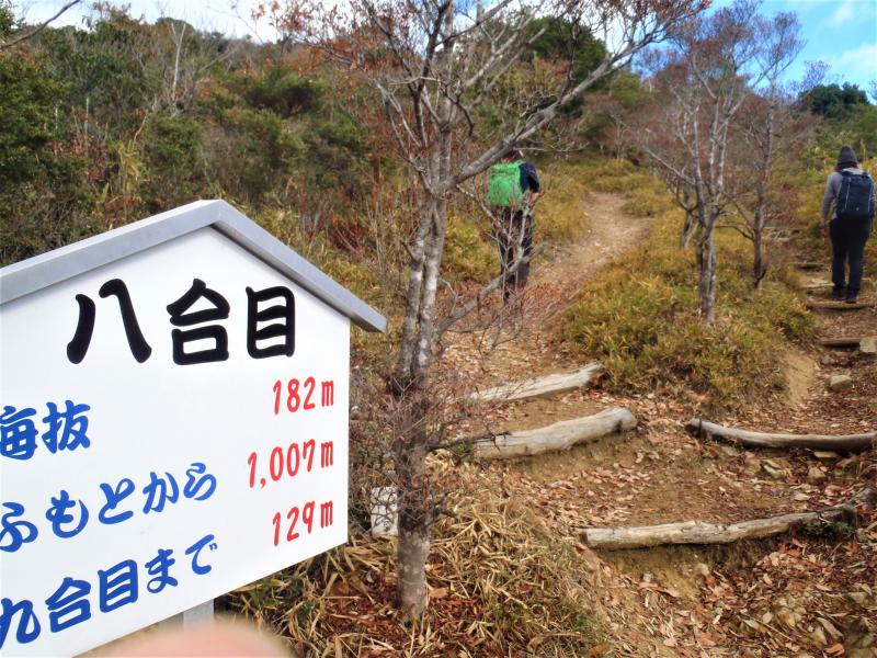 - 登山口 ⇒12分⇒ 二合目 ⇒23分⇒ 八合目 ⇒18分⇒ 雄鷹台山253m ⇒35分⇒ 登山口
