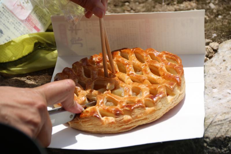 サプライズに山先輩からのホールのアップルパイ!
