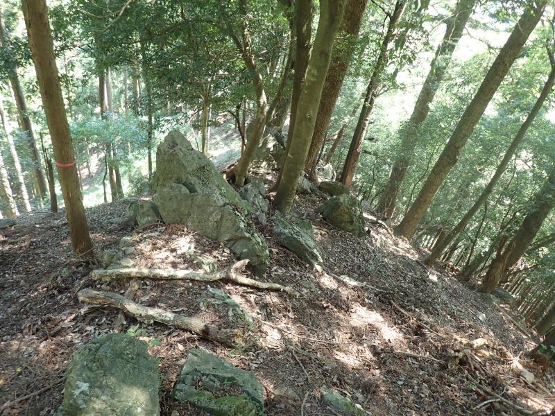 筑摩山の山頂手前の急登でルートがわかりにくかったですがピンクテープがあります。