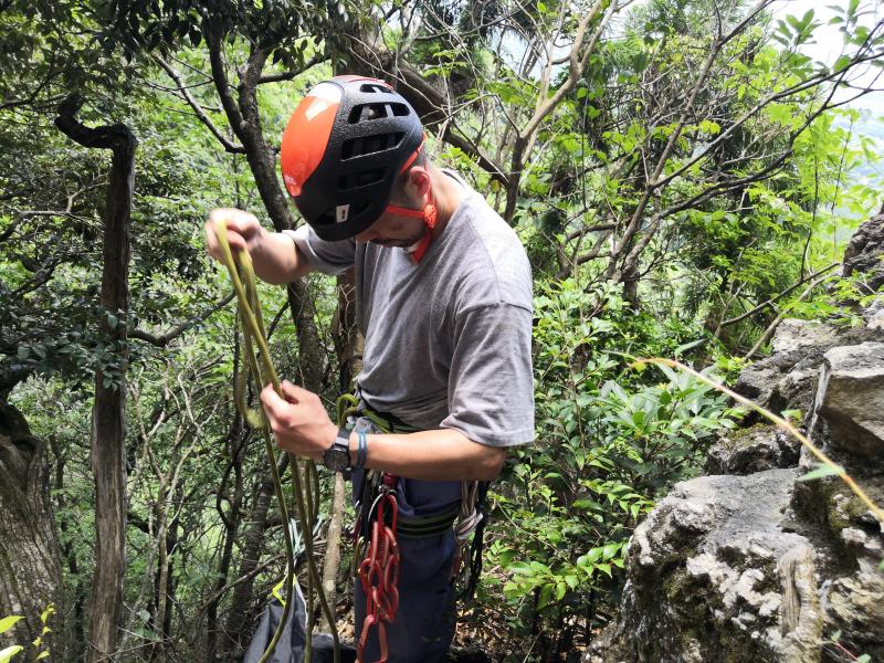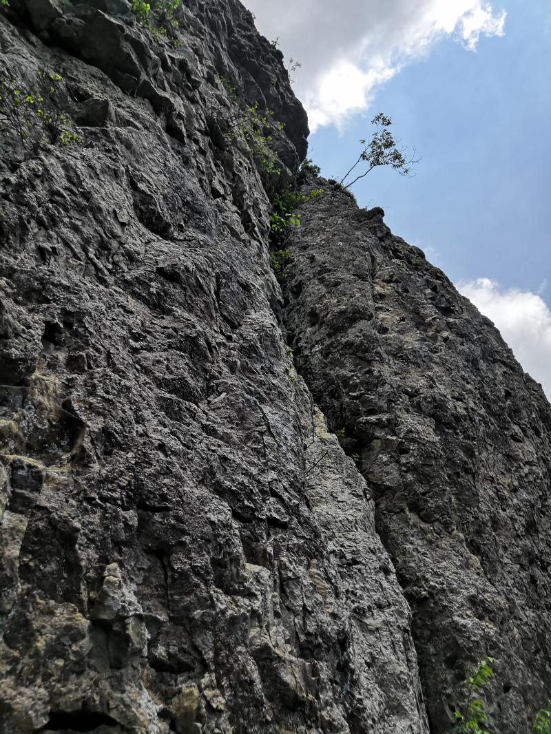 全体的に岩は脆く「ホールドは欠けるもの」として扱ったほうが良いです。そんな感じなのでもちろん落石は当たり前、ヘルメットは必須です。