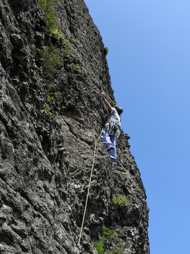 初めて行ったエリアのため少々迷いましたが、実際はマルチピッチとは思えないほどアプローチ時間も短く1ピッチ目からかなり高度感を感じることができる岩場でした。