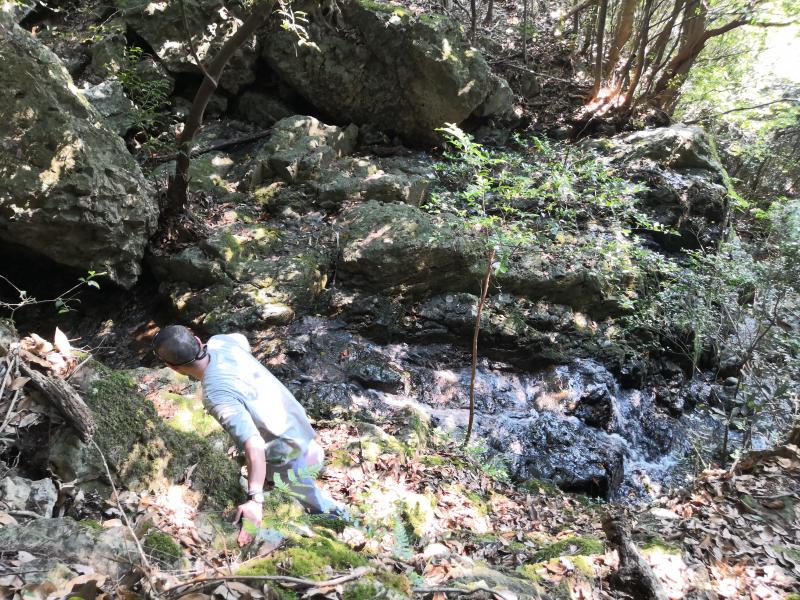 - 良好。駐車場から入り登ってすぐ右。踏み跡を辿り、赤いテープがついたケルンがある方向に進むとフィックスロープが出てくる。それをまた辿るとF岩まで行ける。が、わかりづらいので赤布やフィックスロープがなくなったら引き返し探すのが吉。