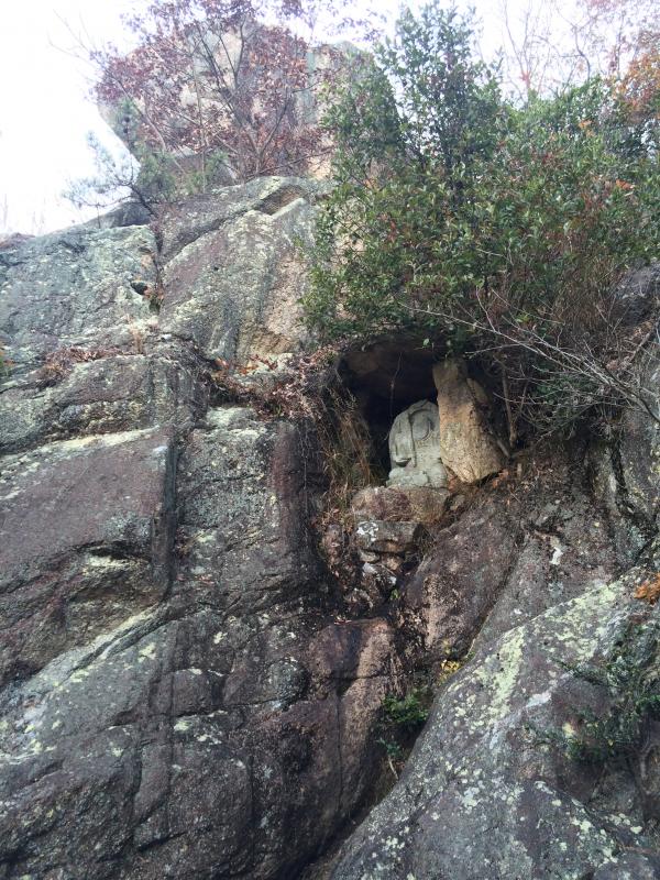 - 岡本八幡神社→(15分)石鳥居→(15分)展望台ベンチ→(40分)風吹岩→(30分)打越峠分岐→(50分)八幡滝→(10分)岡本八幡神社
