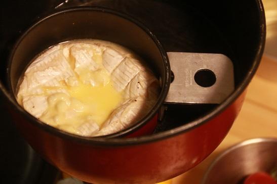 パンやウインナー、家で加熱調理してきたブロッコリーや海老など好みの食材を溶けたチーズにつけて食べる