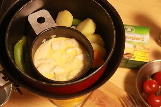 作ってみました。テーマは「山で作る チーズホンヂュ」、トランギアのお気に入りの 鍋で作ってみました。