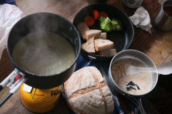 山でやるなら、雰囲気を盛り上げるフォンデュ用のフォークや一緒に飲むワインとグラスなんかにこだわると楽しい