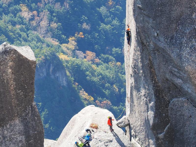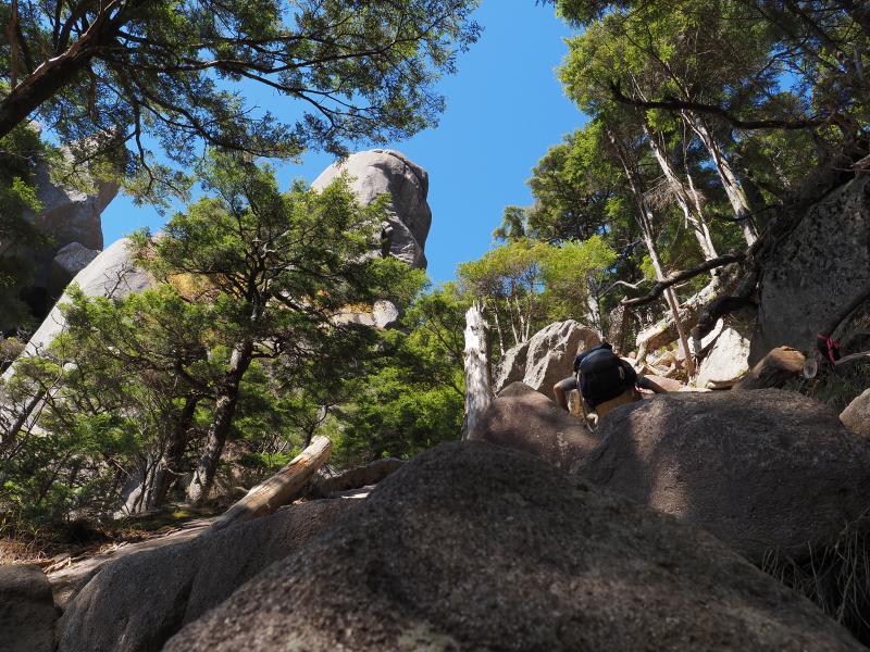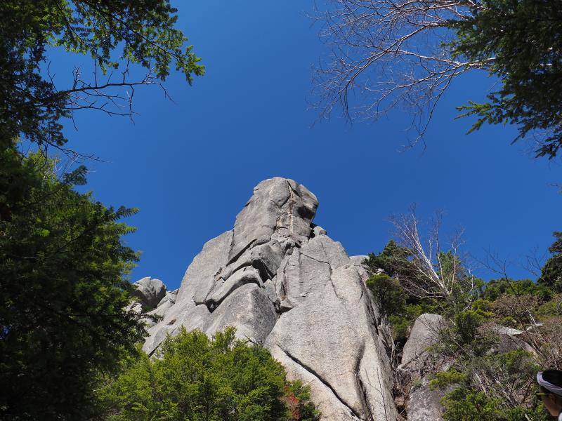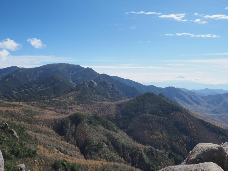 天気はよく、山頂からは翌日登る金峰山、そして富士山、南アルプス、八ヶ岳など多くの山が見渡せました♪そして大ヤスリ岩にクライマーが登っていました。瑞牆山山頂にいた登山者から注目の的でしたね。後日SNSを見てたら"Akimama"の方のようでした。下りも気を緩めずに冨士見平へ。