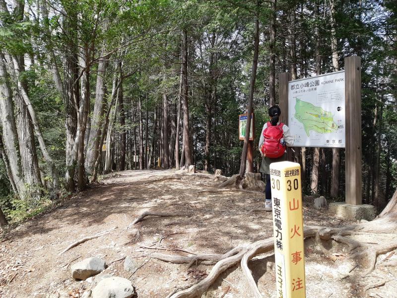 - 小峰ビジターセンター(30)園内最高地点(30)変電所方面の道との分岐(5)広徳寺&沢戸橋方面との分岐(10)砂防ダム(5)金剛の滝(10)変電所方面の道との分岐(25)園内最高点(7)馬頭観音(2)展望広場(10)冒険広場