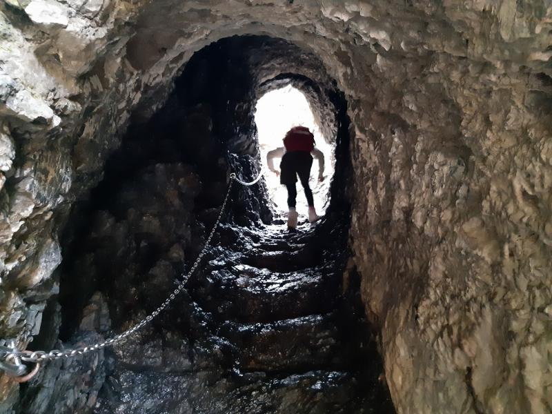トンネルをくぐって見る滝は、娘も大喜び♪