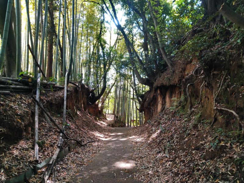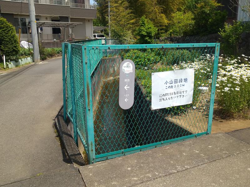 - 小田急多摩線唐木田駅(10分)大妻女子大学分岐(30分)鶴見川源流分岐(30分)小山田緑地見晴らし丘(10分)小山田緑地下池・上池(10分)奈良バイ谷戸(30分)小野路交流館(10分)切通(20分)交差点→小田急・京王永山駅