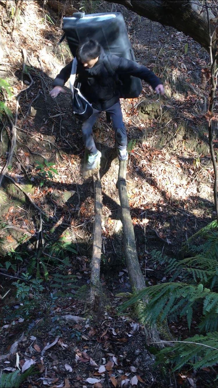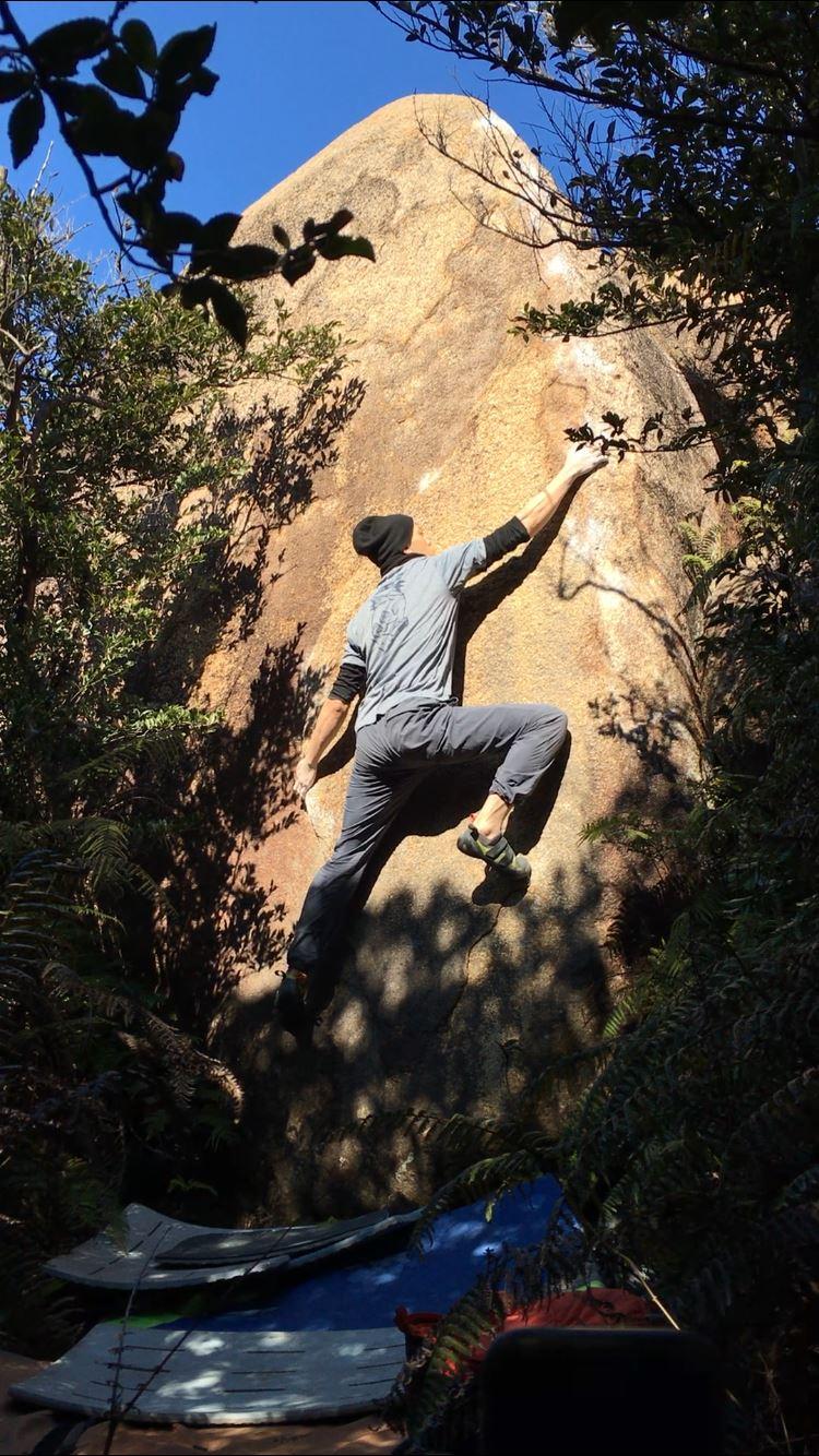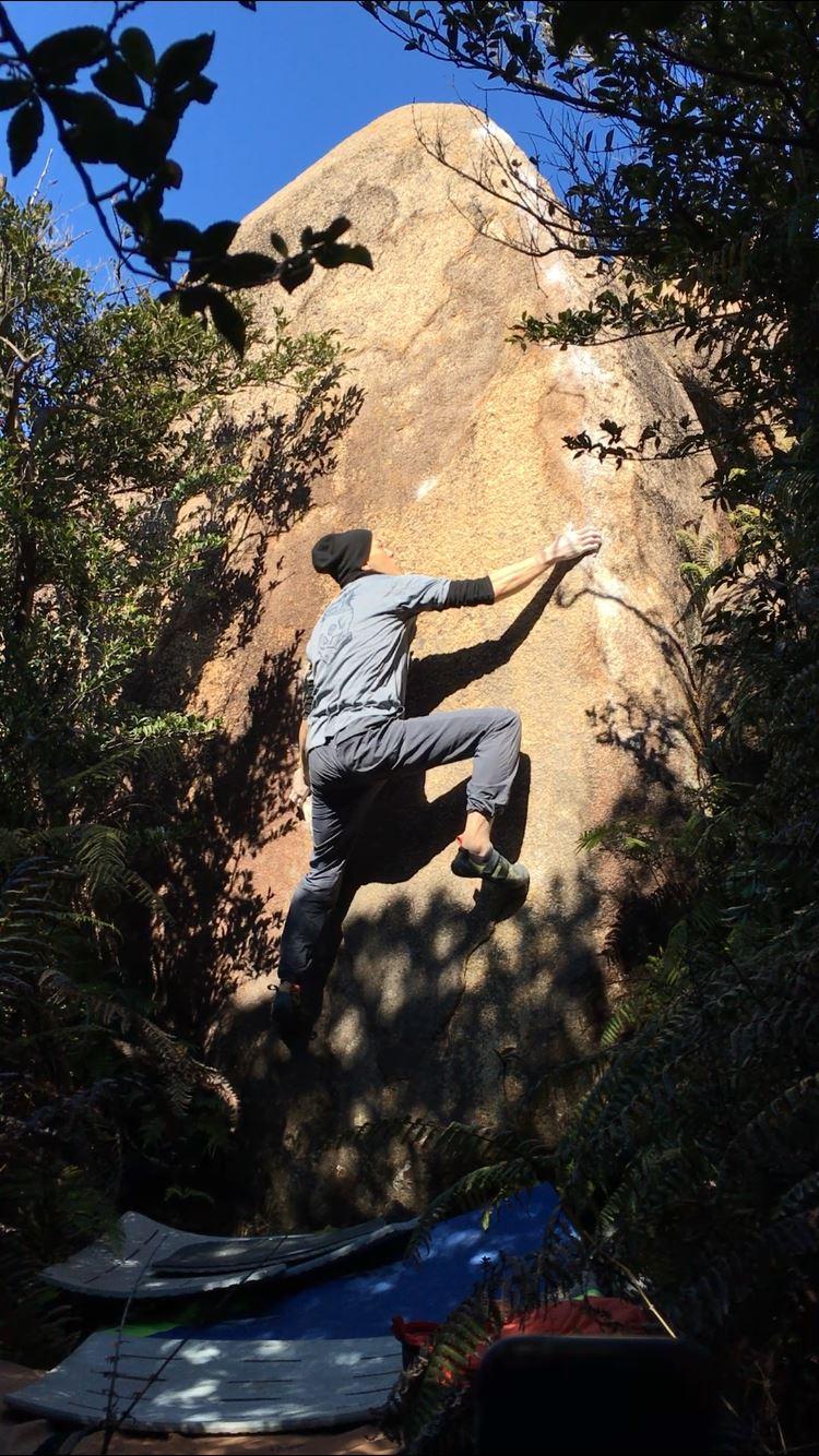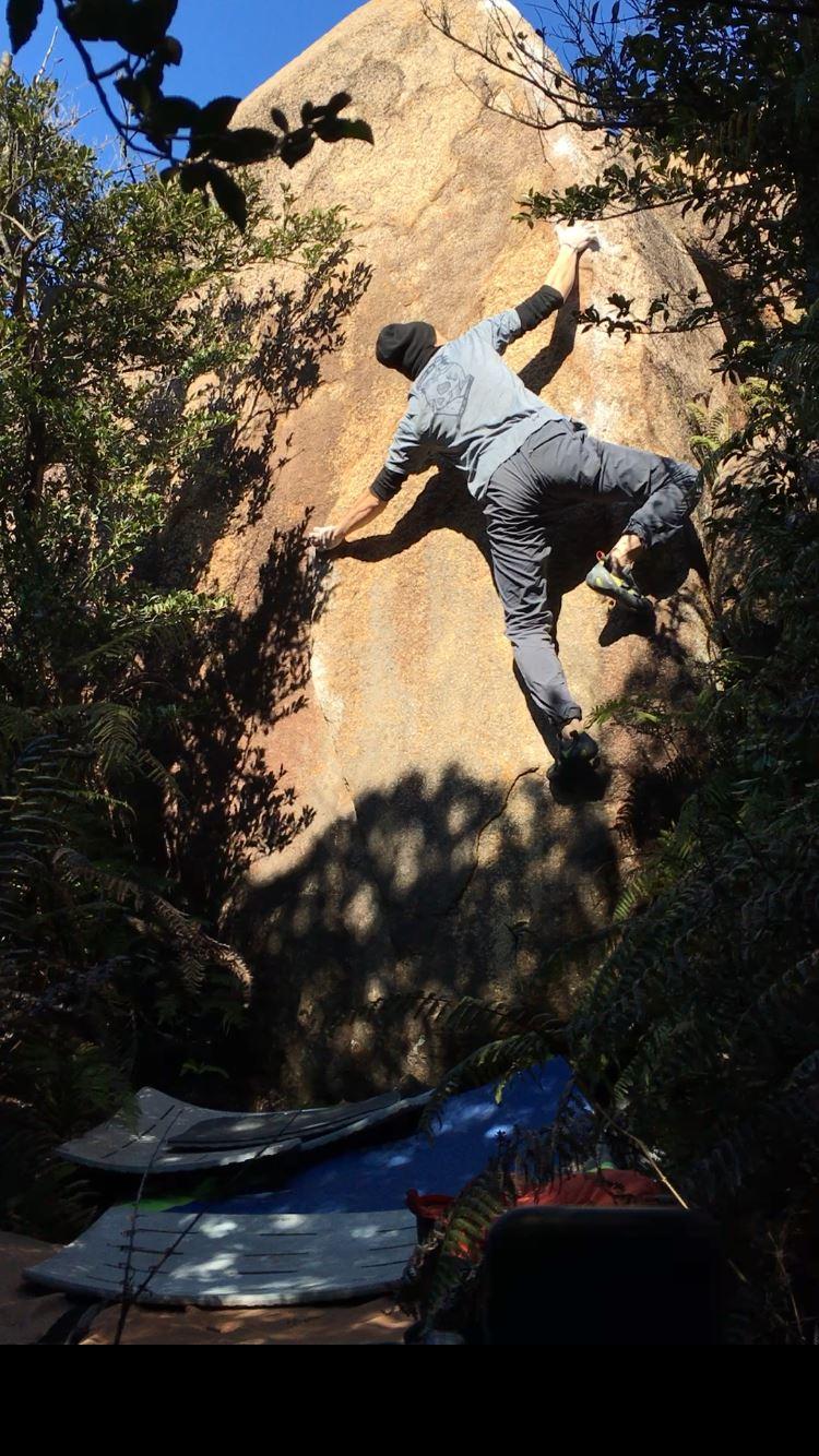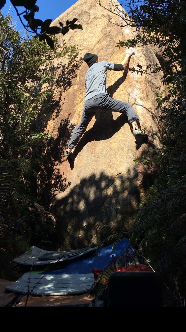 ①「淡雪」の岩を探してさまよっていた時に見つけた課題。リップのホールドがもろく、その内壊れそう。