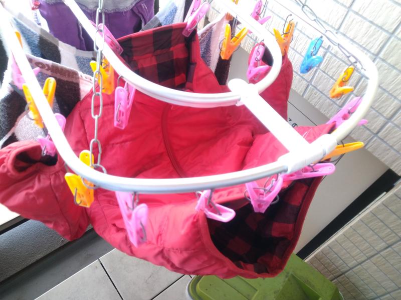 時々,叩いて羽毛が玉にならないようにして乾かせば終了。