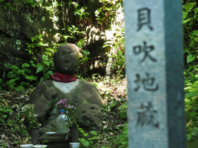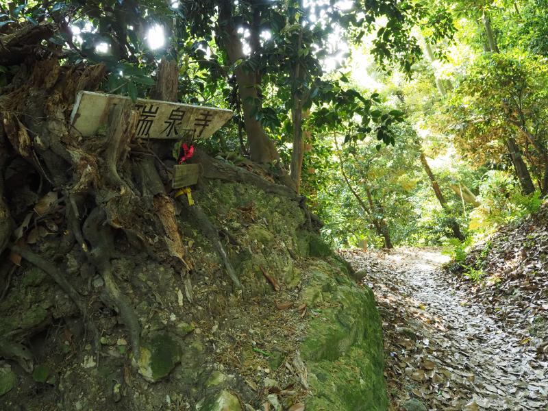 “貝吹地蔵”さんに手を合わせて、15分ほど歩くと“瑞泉寺まで0.4k”という道標があり分岐を右の瑞泉寺方面に下っていきます。民家の屋根が近くになり、階段を下るとゴールの瑞泉寺に着きます。お疲れ様でした。