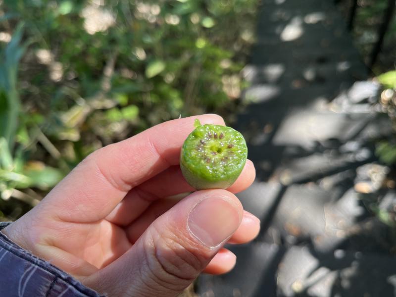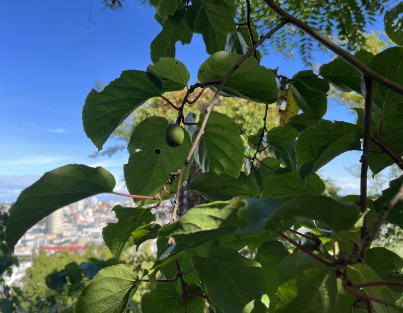 登山道が階段になったあたりで、コクワの実がなっているのを発見しました。