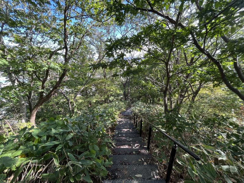 そこから標高85mの山頂までは急な階段と尾根歩きで到達する