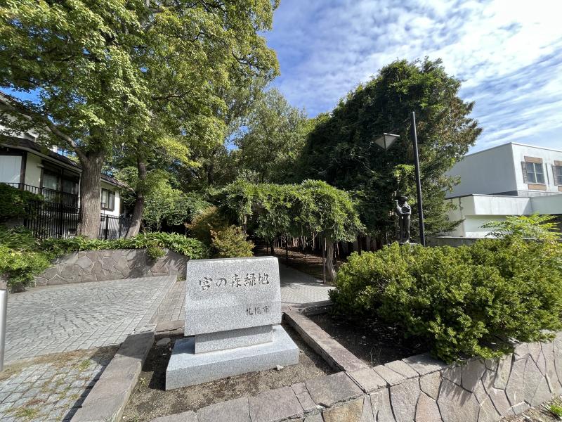 高台の住宅地に残された「宮の森緑地」にそれぞれのピークがあり、2つの山は家や小学校、道路などで完全に分断されそれぞれが独立した山塊となっています。