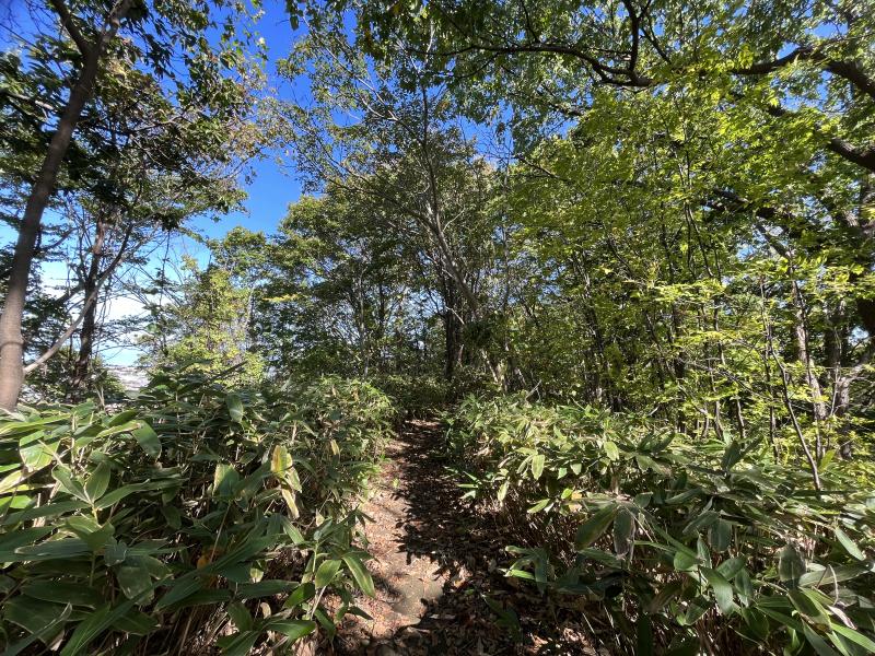 ベンチのある広場付近でツタウルシが登山道上にまで伸びてきている箇所があるので注意