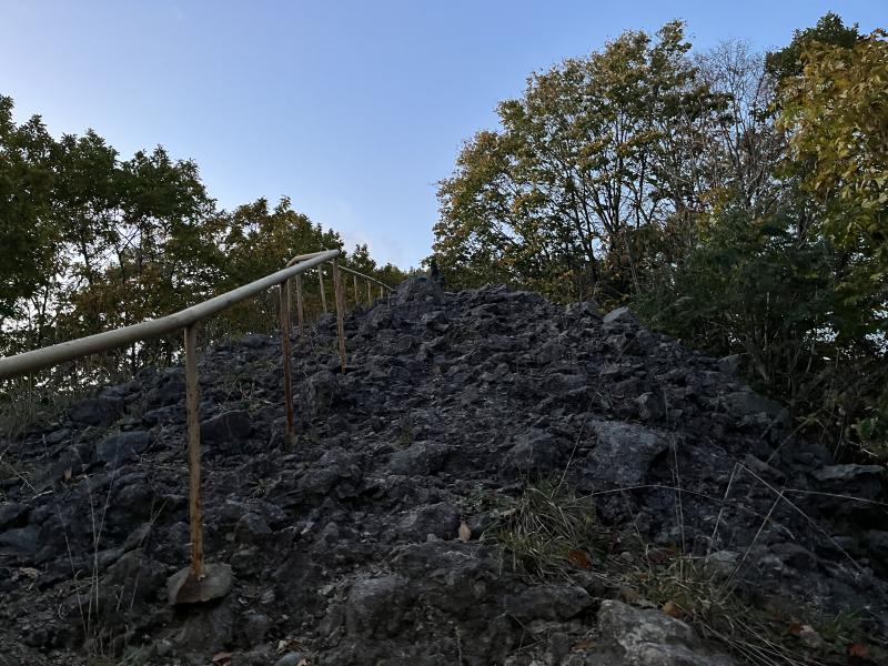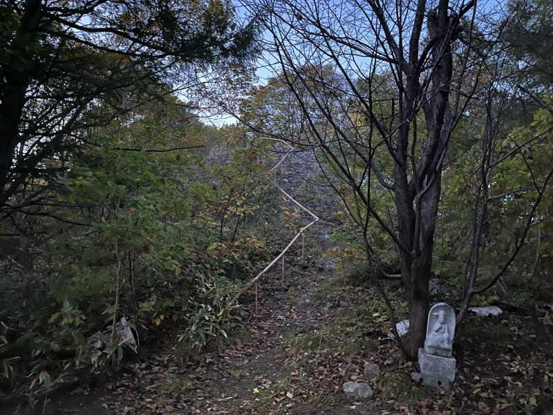 土がむき出しの斜面があり、補助ロープが設置されている箇所があるので注意