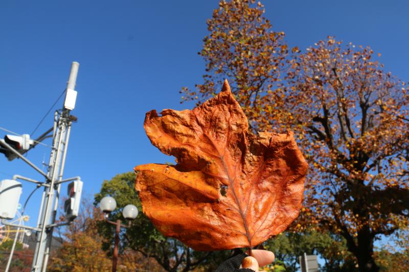 灘駅から歩くと街路樹は桜の落ち葉が多かったですね。