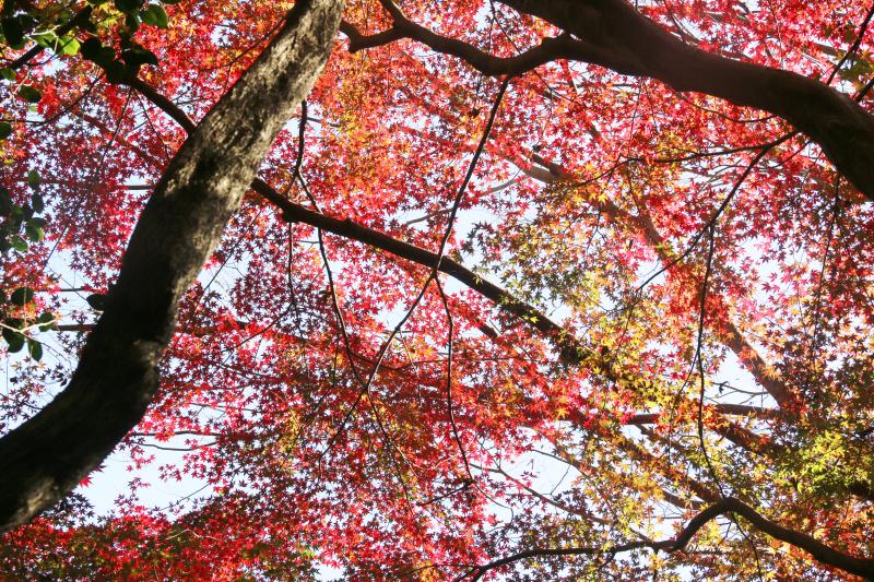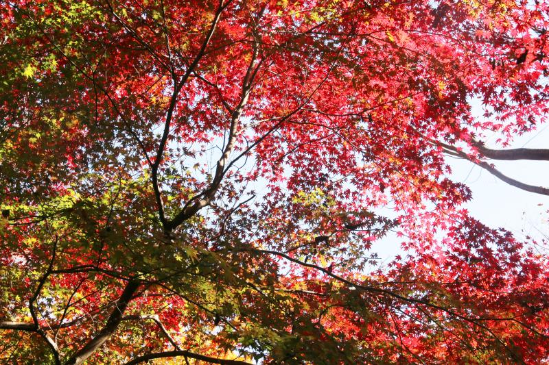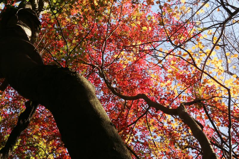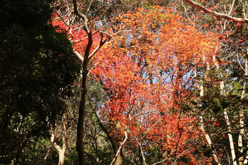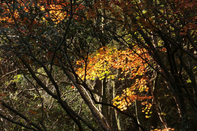 ゴルジュを抜けた 椿の森の傍のイロハモミジ紅葉が素晴らしかったです。