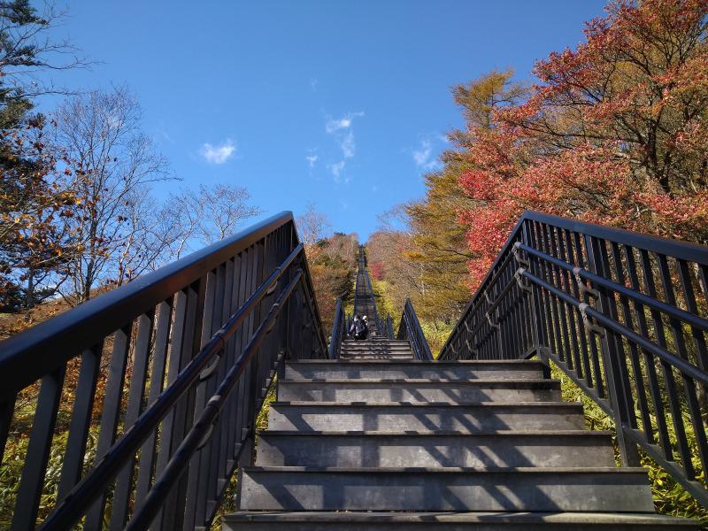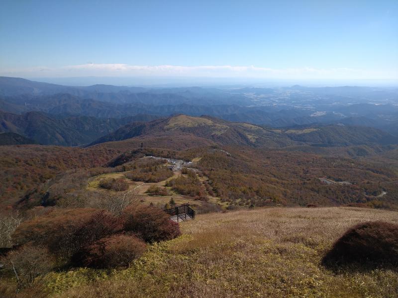 霧降高原にはレストハウスがありレストランも併設しています。トイレや自販機、駐車場も完備されているのでとても便利です。準備を整えたら出発しましょう。1445段の天空回廊を登りきると大展望が楽しめます。小丸山まで抜けると赤薙山が望め、笹原の中を歩く気持ちの良いトレイルとなります。森林エリアになるころには足元に少し前日に降った雪が残り冬が近づいて来ているのが感じられました。赤薙山からはアップダウンを繰り返しながら奥院跡、一里ヶ曽根と歩きます。一里ヶ曽根まで来ると今日の目標地点の女峰山が望めます。
