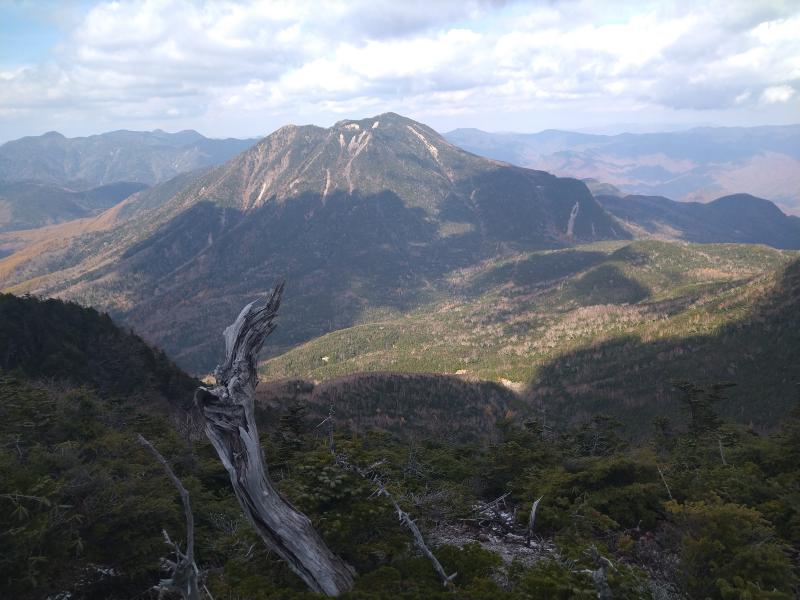 山並みに白い筋が見えます。この先は北側に登山道がついていることが多いので昨日の雪が残っているのでしょう。