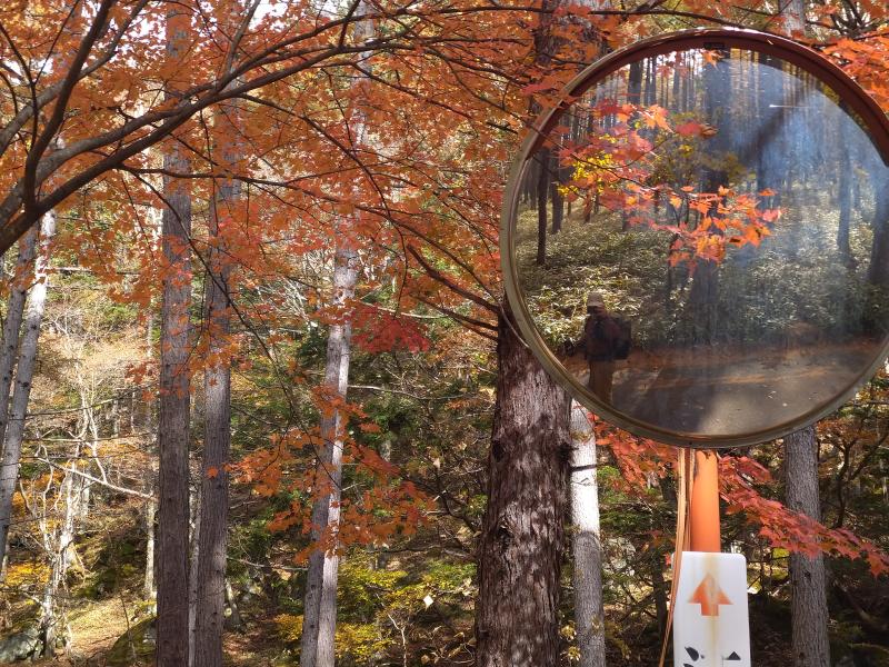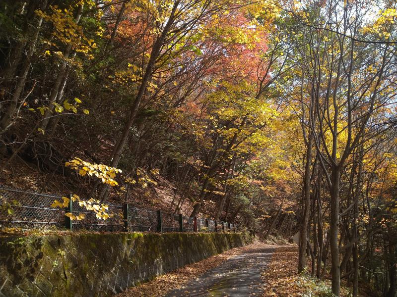 志津峠からの裏男体林道は舗装路でとても歩きやすい道です。紅葉が楽しめ2時間ほどのハイキング気分でした。